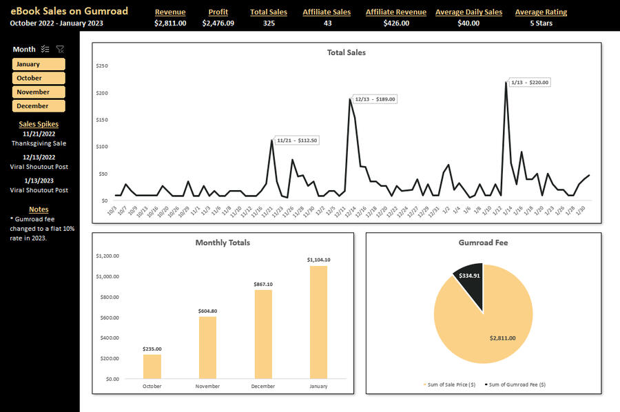 In October of 2022 I released my very own eBook, "The Data Portfolio Guidebook." This project looks at the products performance over the first 4 months since its launch.Here are the questions I was interested in answering: