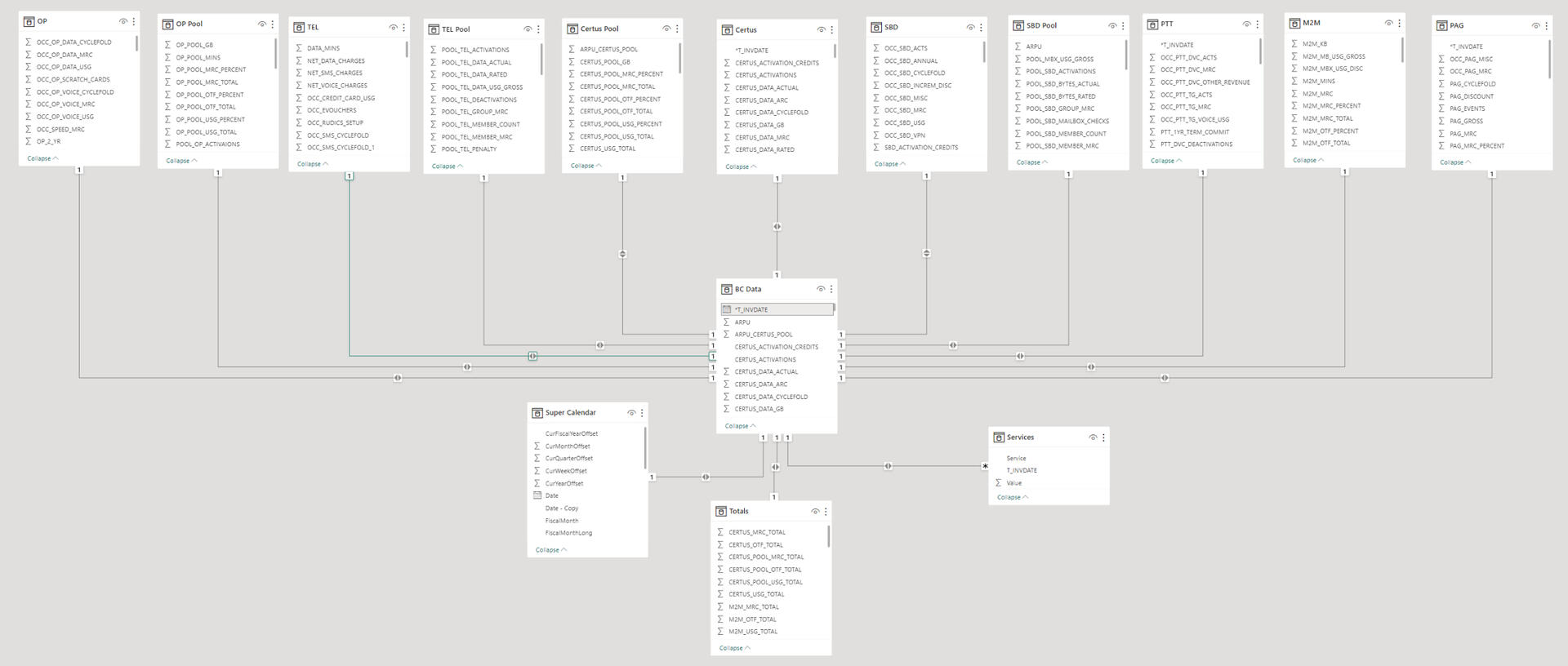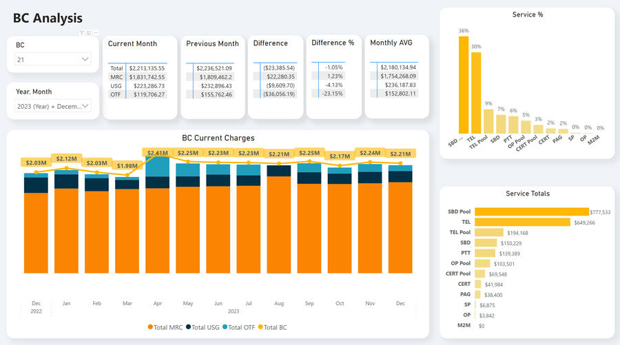 Each tab utilizes a "Day" and Year/Month" Slicer to drill down between bill cycles. The slicers on every tab are synced together.