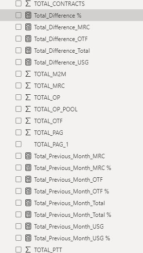 12 DAX measures were created for all 12 tabs in the report for a total of 144 DAX measures overall.