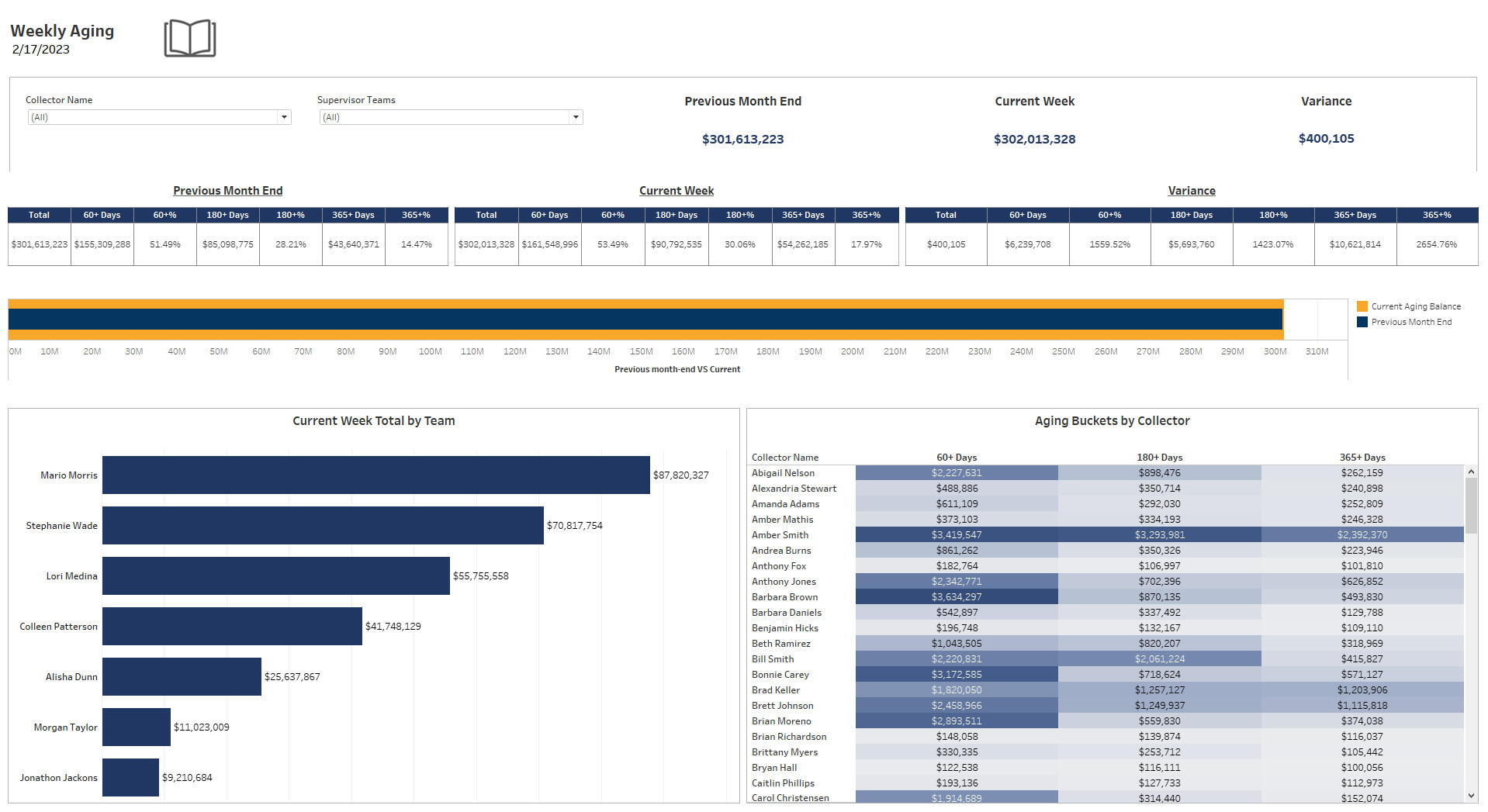 3. What are the balances of each aging bucket by individual associate?I took the following steps to complete the dashboard: